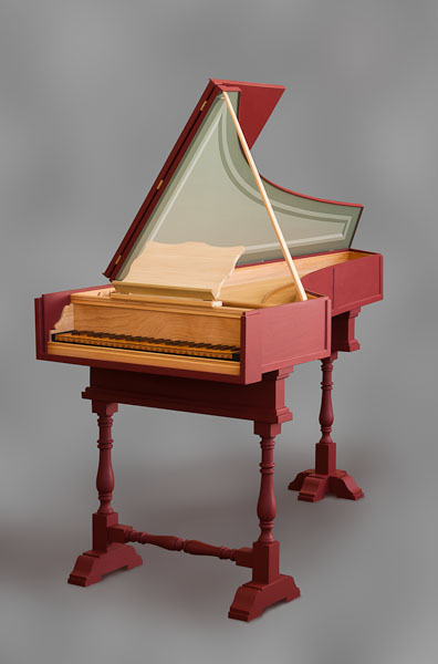 Boxwood keyboard with ebony covered walnut sharps. Pearwood jacks.